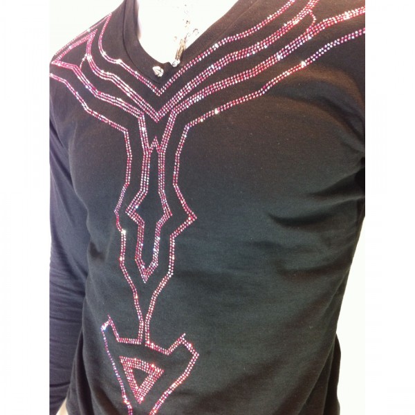 The typical BULU LIMITED top Male or Female will be Close-Cut-Shape, with various embellishing technic of Vinyls/foils, fabric colouring or airbrushing and Crystals/studs, for that unique look that has come to be